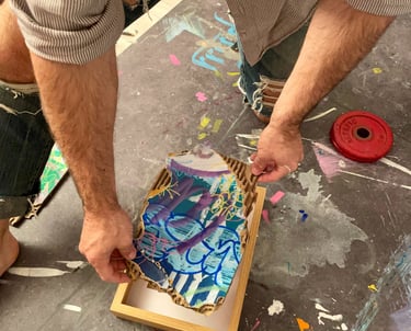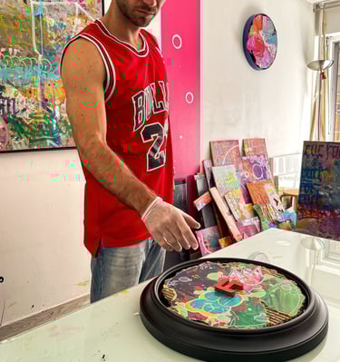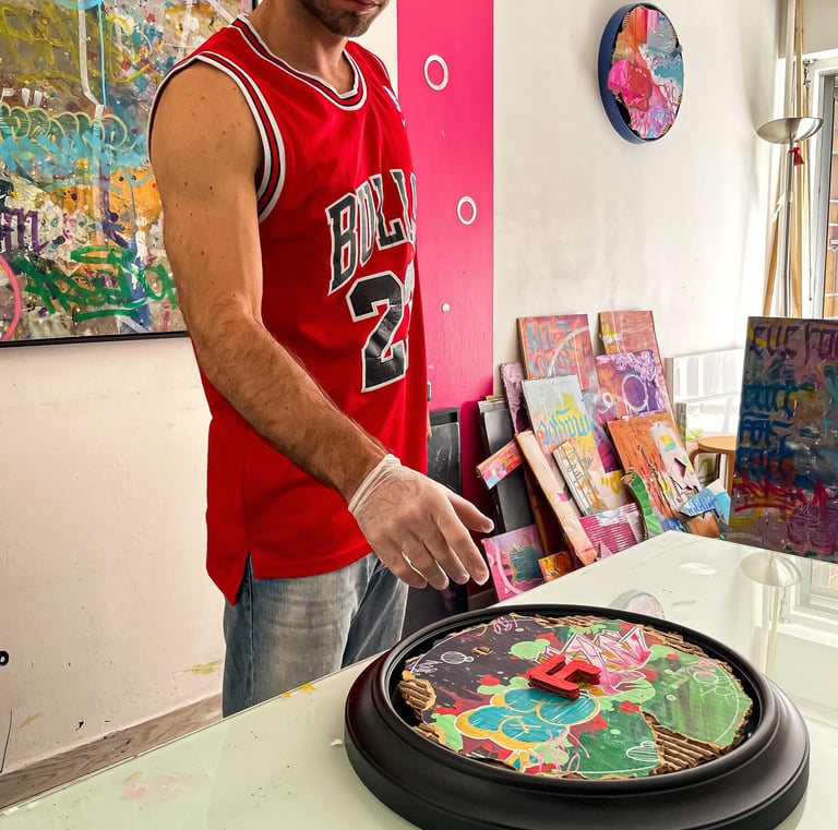 Chaque pièce reflète mon interprétation personnelle de l'environnement urbain, mêlant couleurs vives et formes dynamiques pour capturer l'essence du street art contemporain.